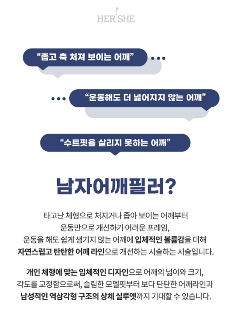 남성 어깨필러는 단순히 미용적인 변화뿐 아니라, 전체적인 체형 밸런스와 자신감까지 높여주는 시술입니다. 운동으로만 채우기 어려운 부분을 보완해주면서도, 자연스럽게 어깨 라인을 살려주는 것이 장점이에요. |