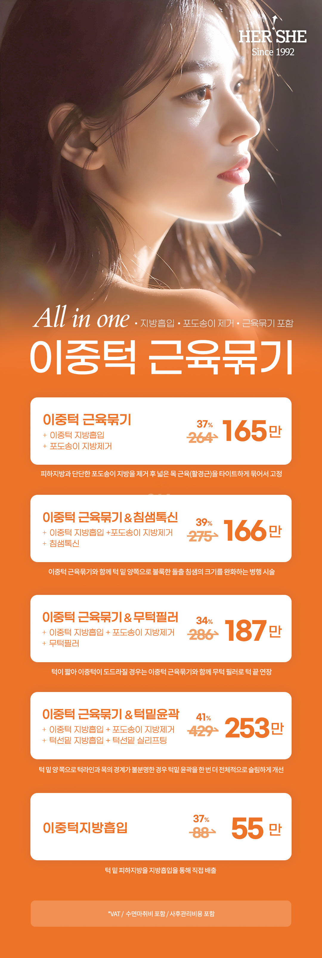 이중턱 근육묶기, 지방흡입+포도송이지방제거 올인원 수술